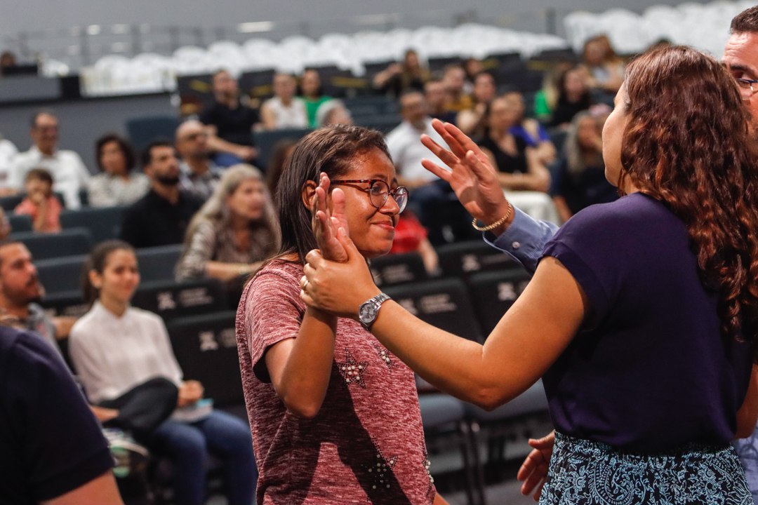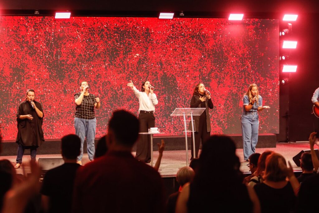 O grupo de música deu início ao culto, declarando junto à igreja a bondade do Senhor e, logo após, Fernando e Miriam Leal dirigiram o primeiro momento de oração em outras línguas.